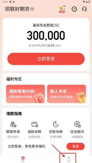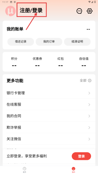 1、打开借贷类应用,点击底部我的选项,进入个人页面。