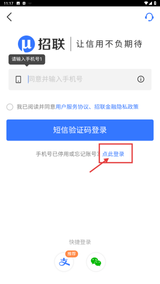 3、在登录页面,点击点此登录找回账号入口,进入找回账号页面。