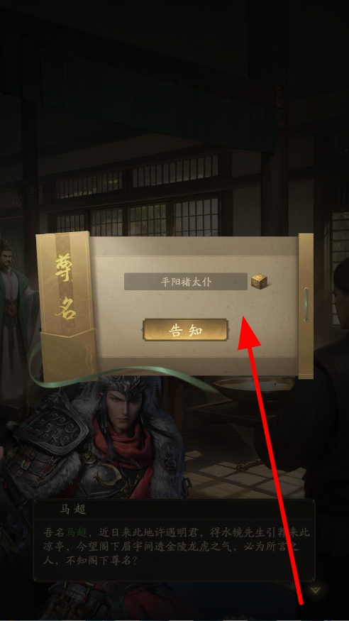 2、玩家会与马超等角色交互,在交互中创建需告知尊名,完成这一步骤,能推进剧情,开启后续的冒险与任务。