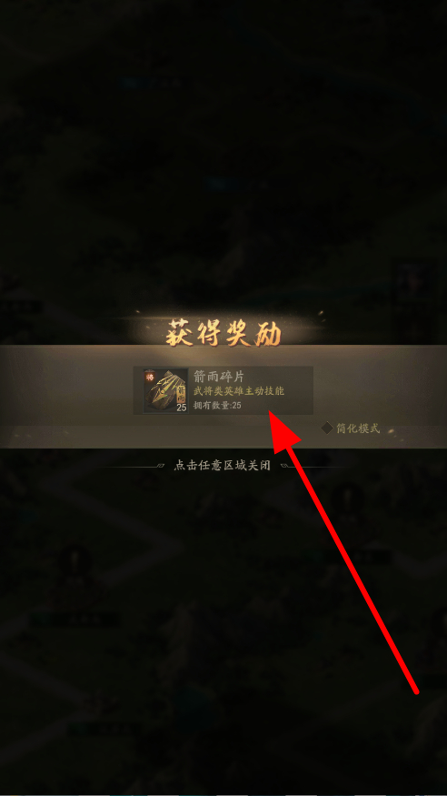 4、完成各类任务或战斗后,能获取奖励,像箭雨碎片等,这些奖励可用于提升武将技能等,增强实力。