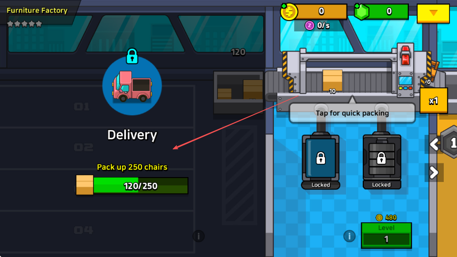 4、完成椅子生产任务后,解锁新任务Pack up 250 chairs,按要求进行打包交付。