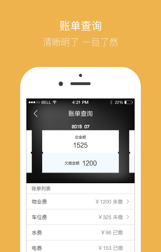 物业账单查询、缴纳——查询、缴纳本月及历史物业账单,支持微信、支付宝、银行卡在线支付,多笔账单可一键缴纳;