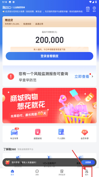 1、打开融360金融应用,点击底部我的选项,进入个人中心页面。