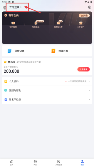 2、在个人中心页面,点击立即登录区域,进入登录界面。