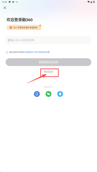3、在登录界面,点击密码登录选项,切换至密码登录模式。