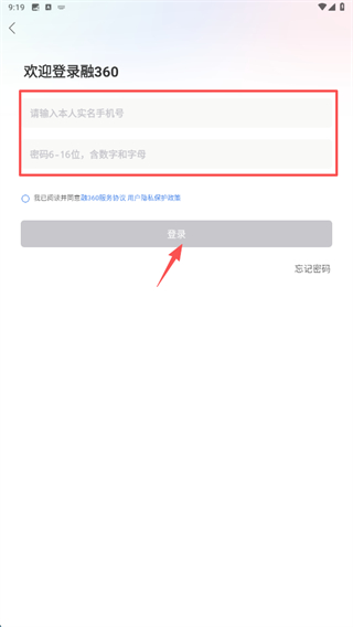 4、输入本人实名手机号和密码,勾选协议后点击登录按钮,完成账号登录。