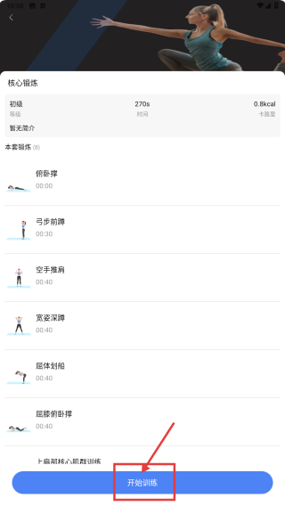 4、在课程详情页,点击开始训练按钮,开始核心训练课程。