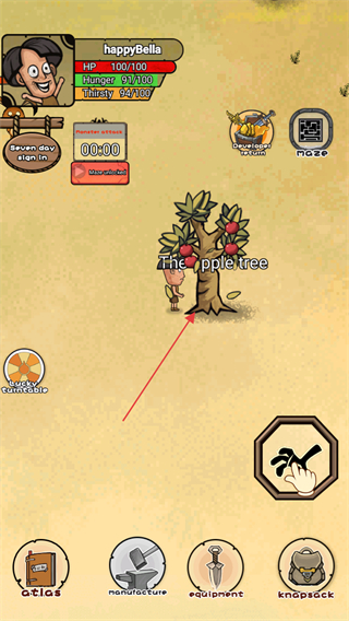 3、发现Theappletree后点击互动按键收集苹果补充饥饿值。