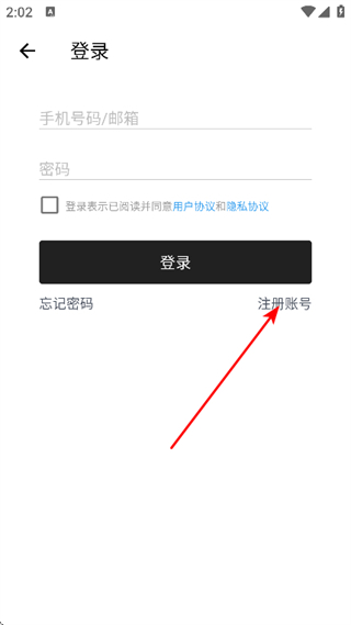 3、在登录页面,点击注册账号,进入手机注册页面。