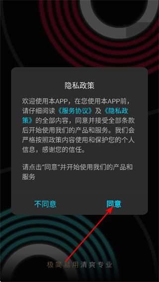 1、在隐私政策弹窗中,点击同意,进入APP主页面。