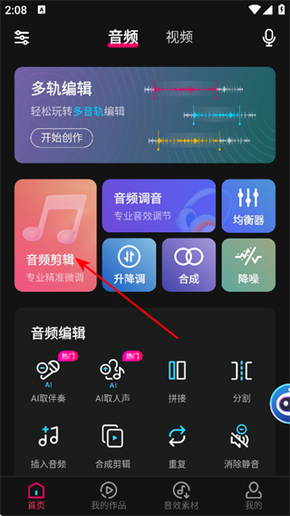2、在APP主页面,点击音频剪辑,进入选择音频页面。