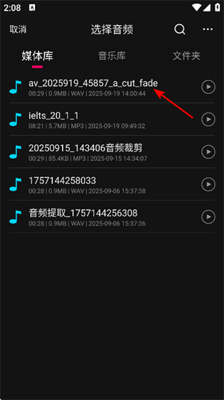 3、随后我们可以在选择音频页面,选择要剪辑的音频。