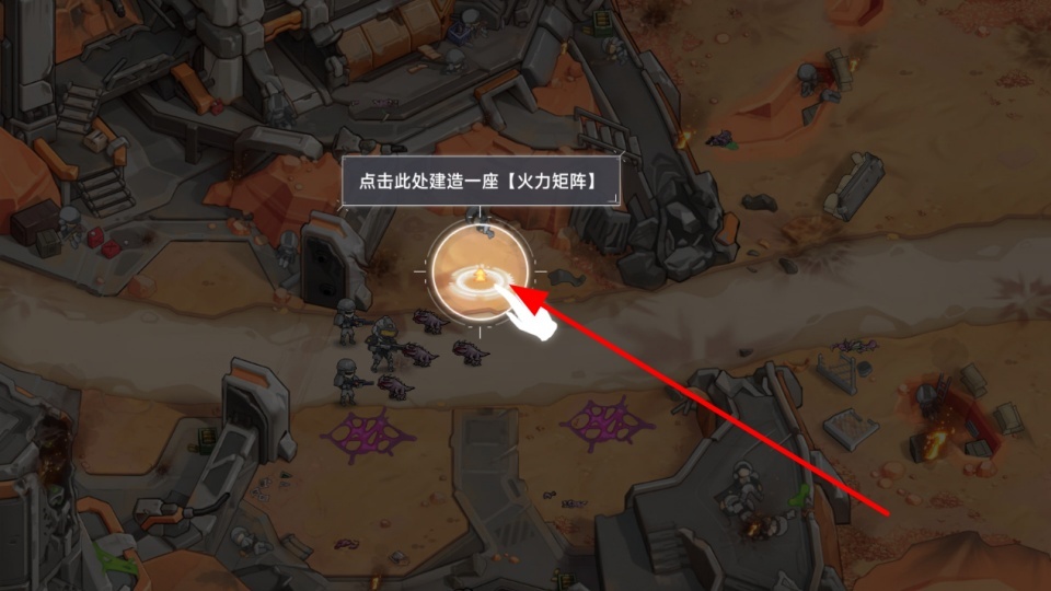 1、玩家首先在指定位置建造火力矩阵等防御建筑,这些建筑是抵御敌人的重要力量,为后续战斗筑牢防线。