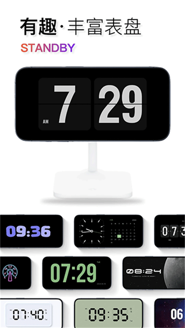 2、多元功能覆盖:包含全屏翻页时钟、悬浮时钟、桌面小组件、倒数日、倒计时等功能,从日常看时到日期规划、专注计时,全方位满足用户对时钟工具的多样需求。