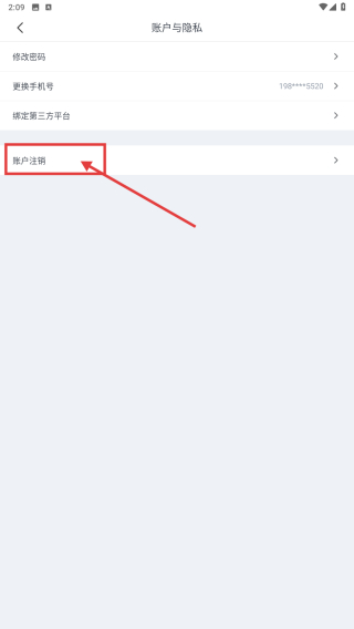 4、在账户隐私页面,点击账户注销选项,进行账号注销操作。