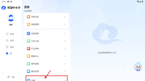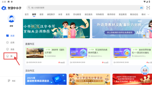 1、打开智慧中小学应用,点击左侧我选项,进入个人中心页面。