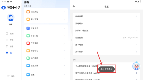 3、在设置界面,点击清理缓存选项,执行缓存清理操作。