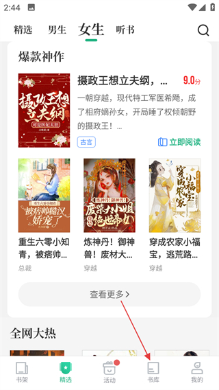 1、打开爱看书,点击页面底部的书库,进入书库页面。