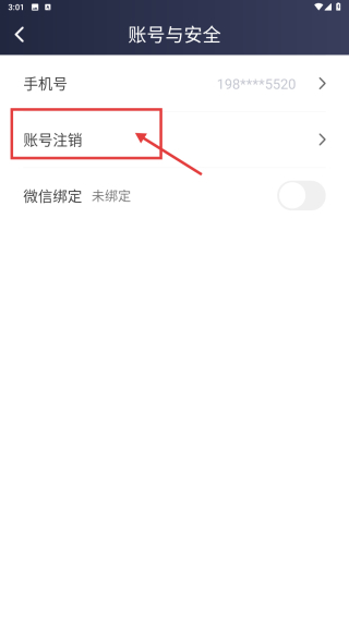 4、在账号安全页面,点击账号注销选项,进行账号注销操作。