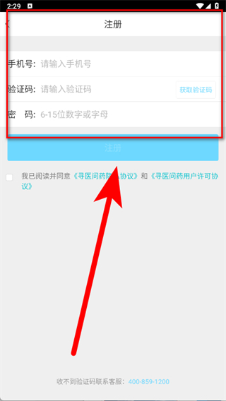 4、输入手机号,输入收到的验证码,设置密码等信息后,点击注册。