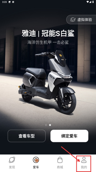 1、打开雅迪智行应用,点击底部我的选项,进入个人中心页面。