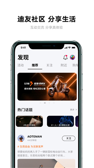 雅迪智行是一款聚焦高端智能出行的服务应用,搭载智能中控等多项核心智能科技,以简化操控方式为核心,深度满足用户多元出行需求,它能帮助用户实时绑定同品牌电动车进行智能化管理,不仅可远程操控车辆、监测实时电量、查看停放状态,还能记录骑行轨迹、锁定车辆位置,更能通过自动报警。