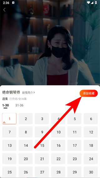 4、在选集页面,点击添加收藏,方便后续快速找到该短剧继续观看。