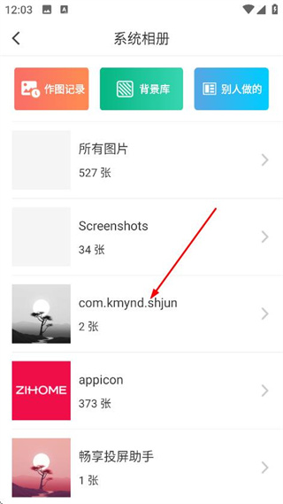 2、在系统相册页面,选择图片所在的相册,进入该相册图片选择页面。