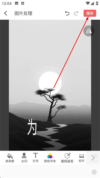 4、在图片处理页面,对图片进行编辑操作后,点击保存,完成图片处理并保存。