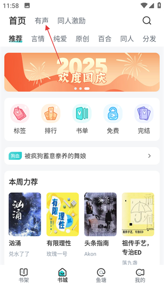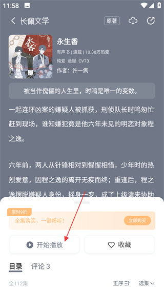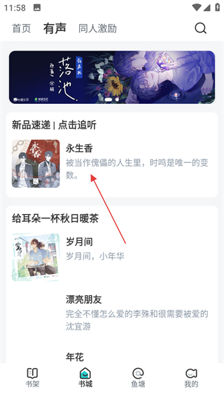 2、在有声页面,选择喜欢的有声书,进入有声书详情页面。