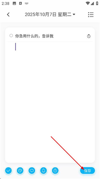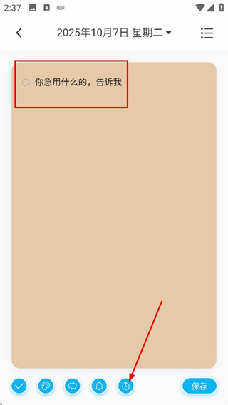 2、在内容编辑页面,输入内容后,点击倒数日图标,进入倒数设置页面。
