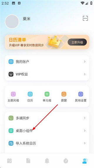 2、在个人相关页面,点击桌面小组件,进入桌面小组件页面。