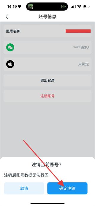 4、在注销确认窗口,点击确定注销,完成账号注销操作。