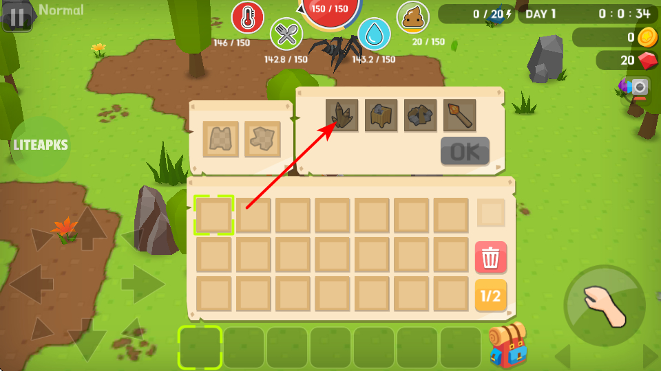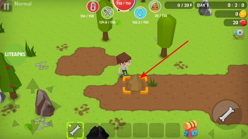 3、靠近土堆区域,可进行挖掘操作,获取土资源,土可用于建筑或制作物品,是生存基础资源。