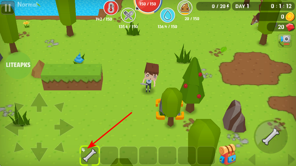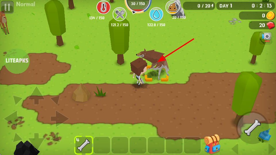 2、点击下方的骨头道具,可装备该道具,用于相关的战斗或与出现的动物互动,拓展游戏玩法。