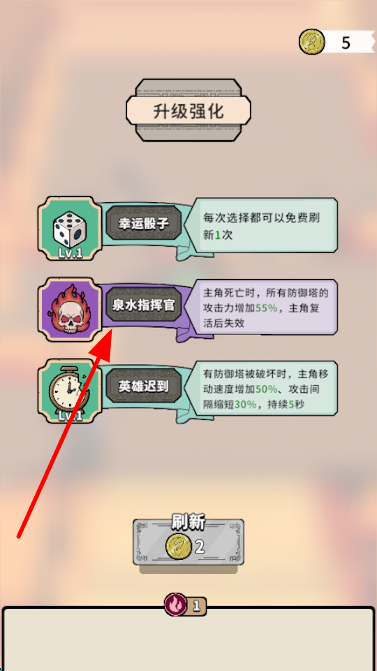 3、升级强化选择,比如能让防御塔在特定情况下攻击力提升,或是主角获得移动速度加成等选择合适的强化效果,助力战斗。