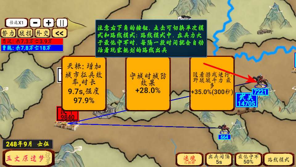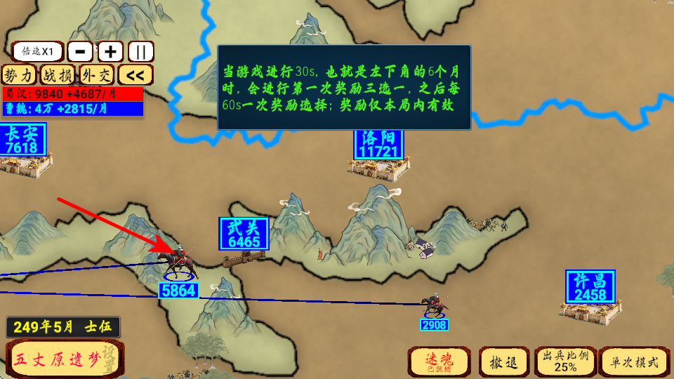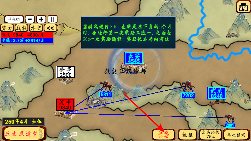 4、合理使用技能迷魂,在关键时刻干扰敌方,配合兵力优势推进战线,快速占领关键城市如长安,扩大势力范围。