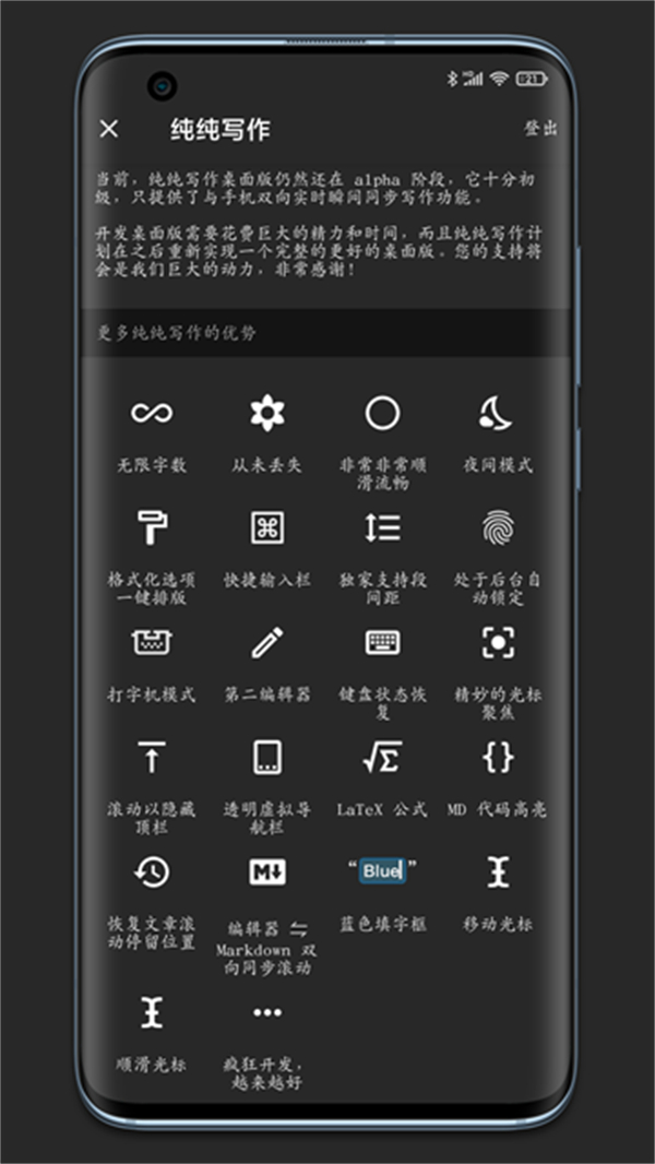 纯纯写作是一款专注文字编辑领域的写作软件,以“绝不丢失内容”为核心目标,同时兼顾快速操作与优秀体验,为用户打造高效的写作环境,它不仅配备历史记录、段间距调节、多重防丢失等基础功能,还提供丰富的写作辅助工具,满足不同场景下的创作需求,软件支持“快捷输入栏”与“格式化工具”两大实用功能。