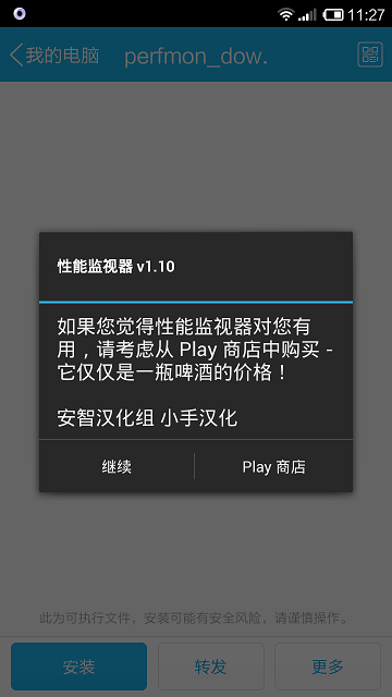 这款性能监视器PerfMon来自Chainfire大神,这个不是时刻都会用到,但对调试系统很有帮助,能实时显示当前程序的各项消耗。这个是免费版本,如果喜欢可以在play捐助2.49,两者功能无区别。