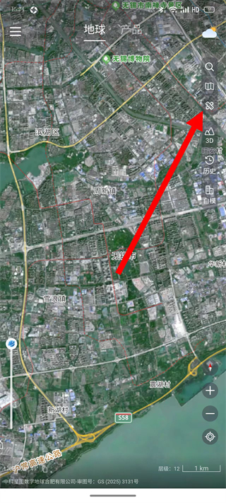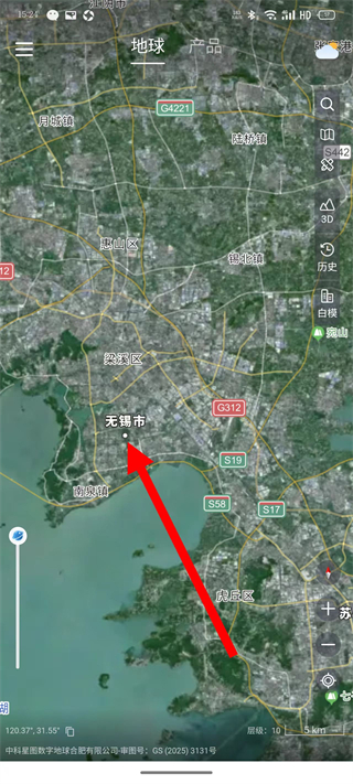 1、打开星图地球APP,扩张查看卫星地图。