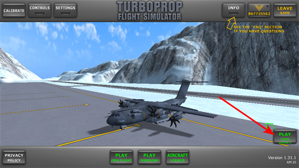 1、点击PLAY按钮,进入Turboprop Flight Simulator游戏的飞行模拟环节,开启了飞行的任务。