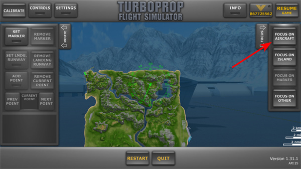 3、点击FOCUS ON AIRCRAFT,将视角聚焦于飞机,观察飞行状态和周围环境,提升精准度。