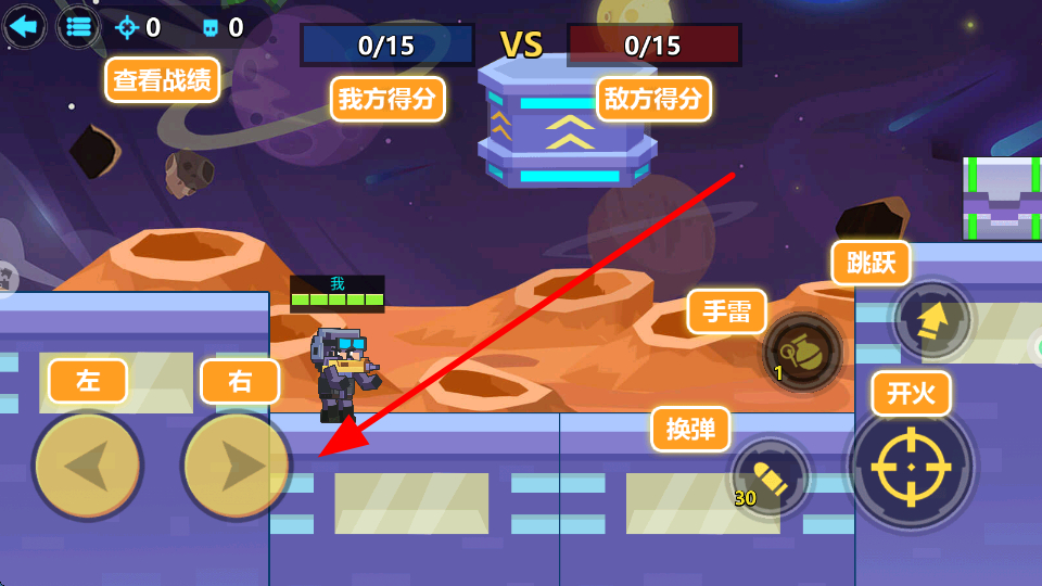 1、通过点击左、右方向按钮,控制角色在场景中向左右移动,以此调整位置,接近敌人或躲避攻击,需根据战场情况灵活移动。