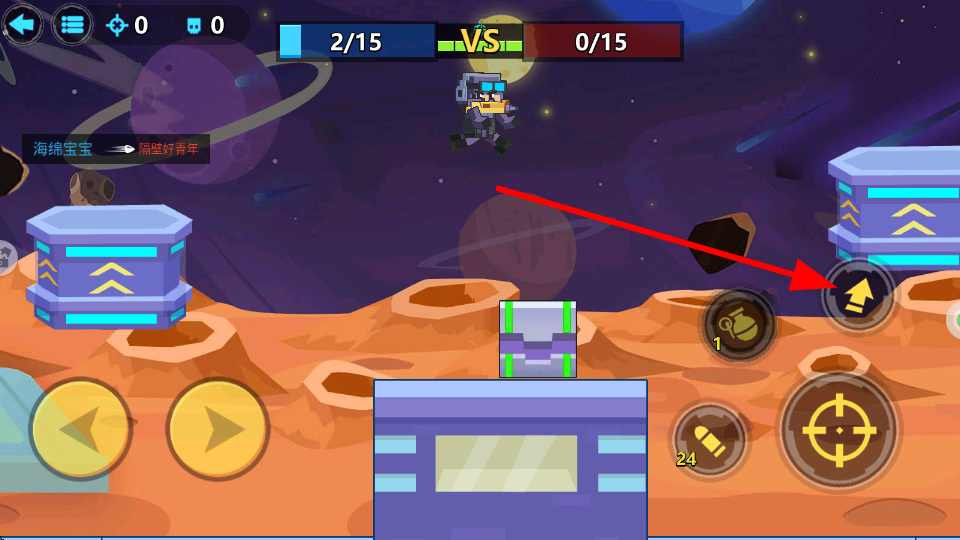 3、运用跳跃,点击跳跃按钮,让角色向上跳跃,可跨越障碍物,或在躲避敌人攻击时,借助跳跃调整位置,占据有利战斗点。