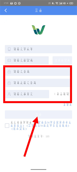 4、设置密码、确认密码,勾选同意相关协议后,完成注册。