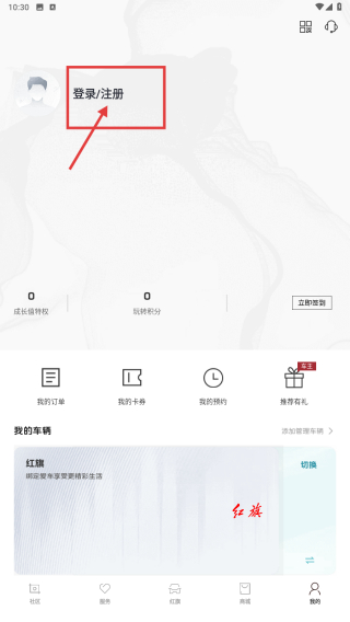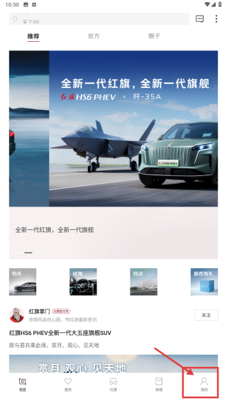 1、打开红旗汽车应用,点击底部我的选项,进入个人中心页面。