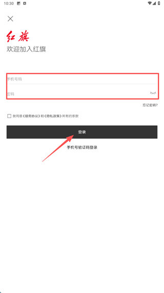 4、在该界面输入手机号码和密码,勾选同意协议后,点击登录按钮,完成账号登录操作。