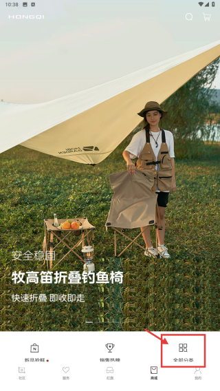 1、打开红旗汽车应用,点击底部商城选项,进入商城页面。