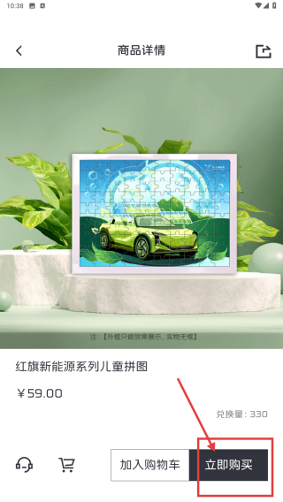 3、选择红旗新能源系列儿童拼图商品条目,进入商品详情页面。