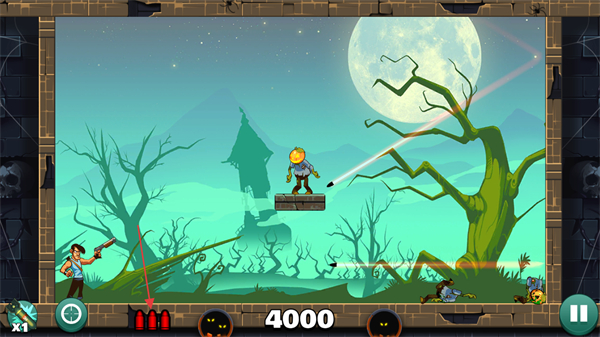 4、有限子弹资源限制:每关提供的子弹数量固定且通常少于僵尸数量,玩家必须珍惜每一发子弹,通过精准弹射实现一发多杀,避免资源浪费导致挑战失败,提升玩法深度。